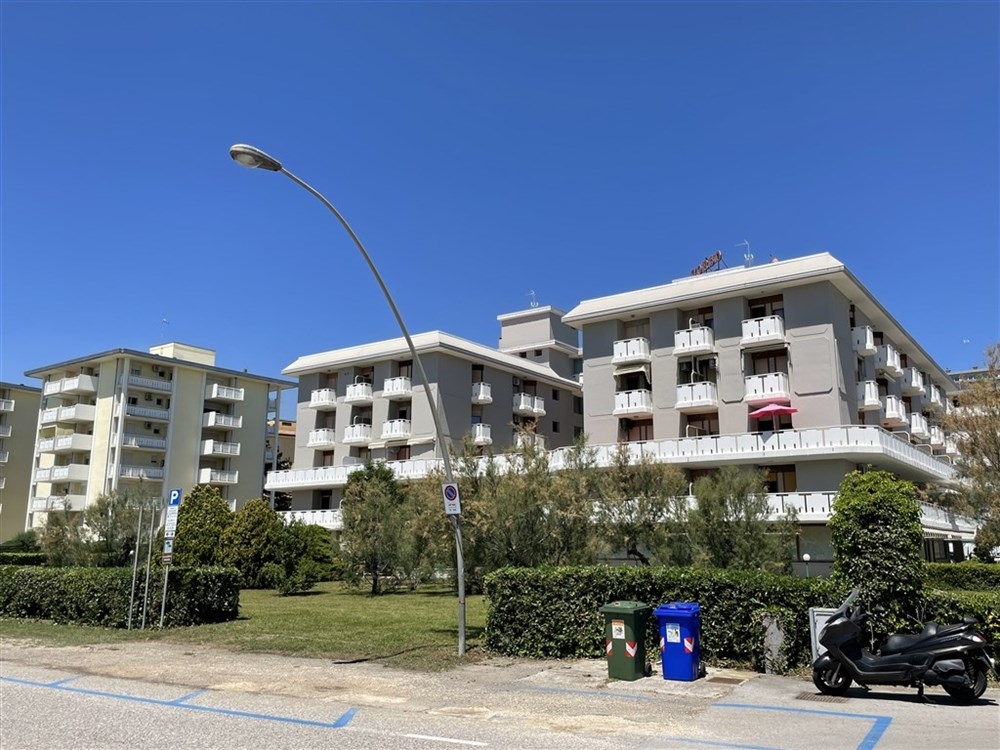 Dva propojené apartmánové domy na náměstí Piazza Zenit, přímo u pláže.