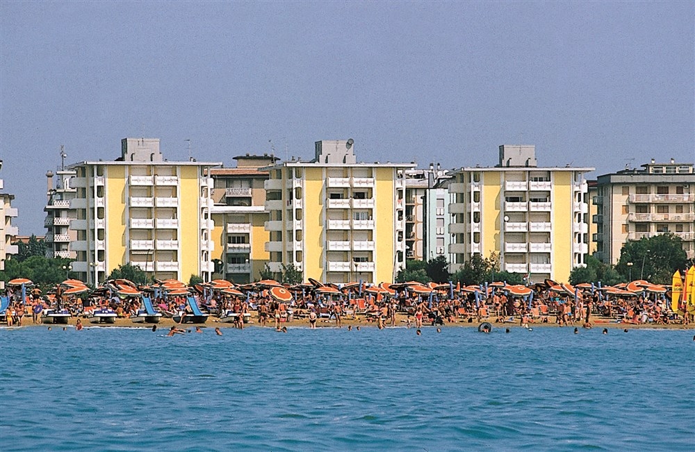 Tři identické 6ti patrové žluté domy (B, C, D) a jeden 4 patrový (A) kousek od náměstí Zenith. Naprosto vyjímečná poloha přímo u pláže a přitom kousek od centra Bibione. Prostorné a praktické apartmány se 2 ložnicemi a větší terasou s přímým nebo bočním výhledem na nekonečné moře a ještě 1 bočním balkonem na sušení prádla. Ke každému apartmánu je k dispozici v přízemí praktický odkládací uzavíratelný box - ideální na úschovu plážových hraček, na odrážedla, kočárek, menší kola, apod. Před domem jsou k dispozici stojany na kola.